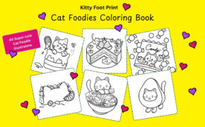- 40 hand-drawn illustrations of cats with food, snacks, drinks, and desserts